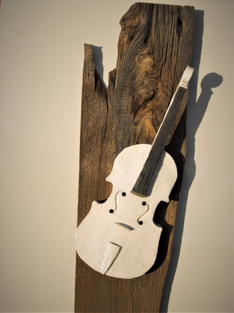 White Violin on Barn wood